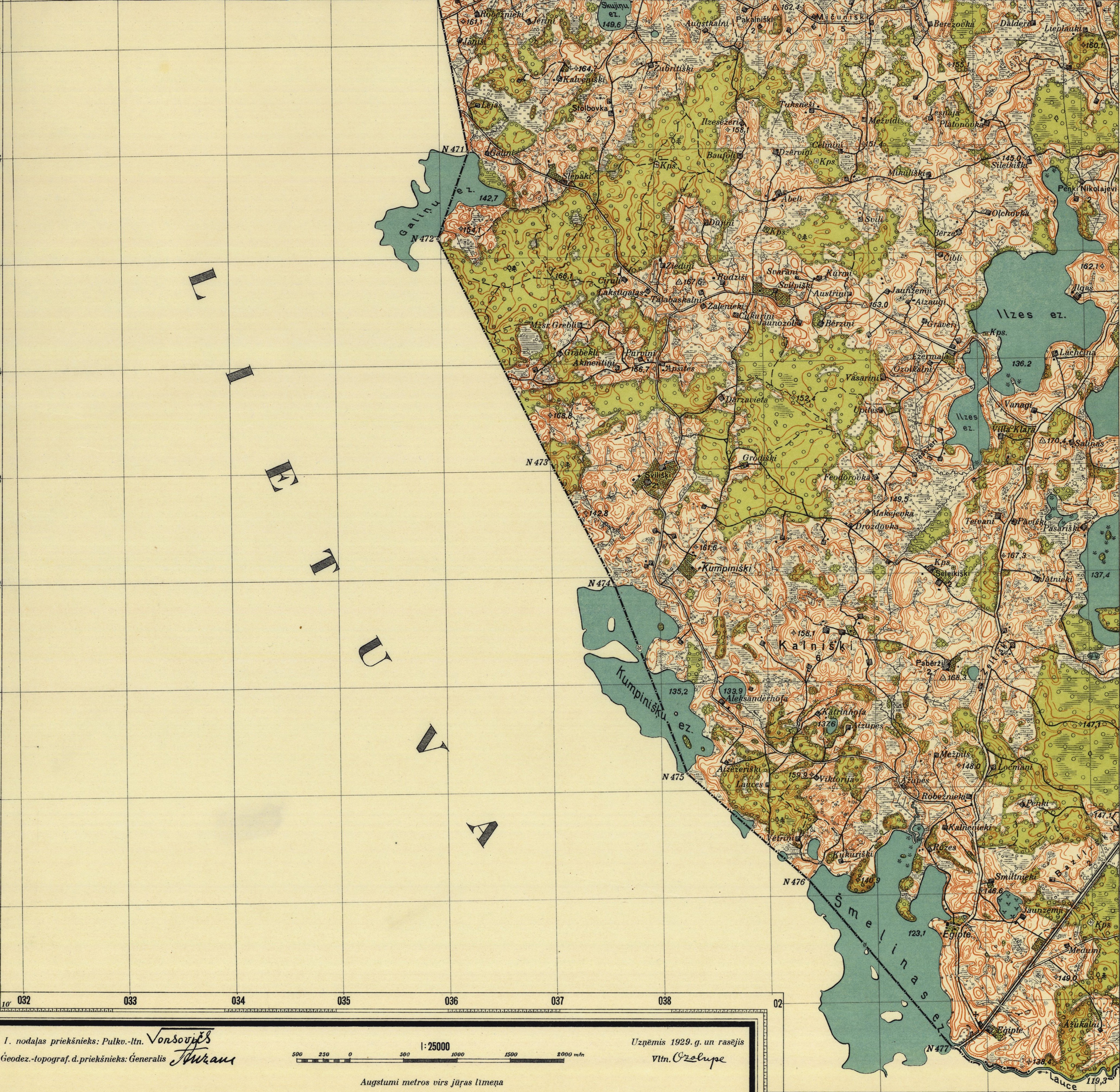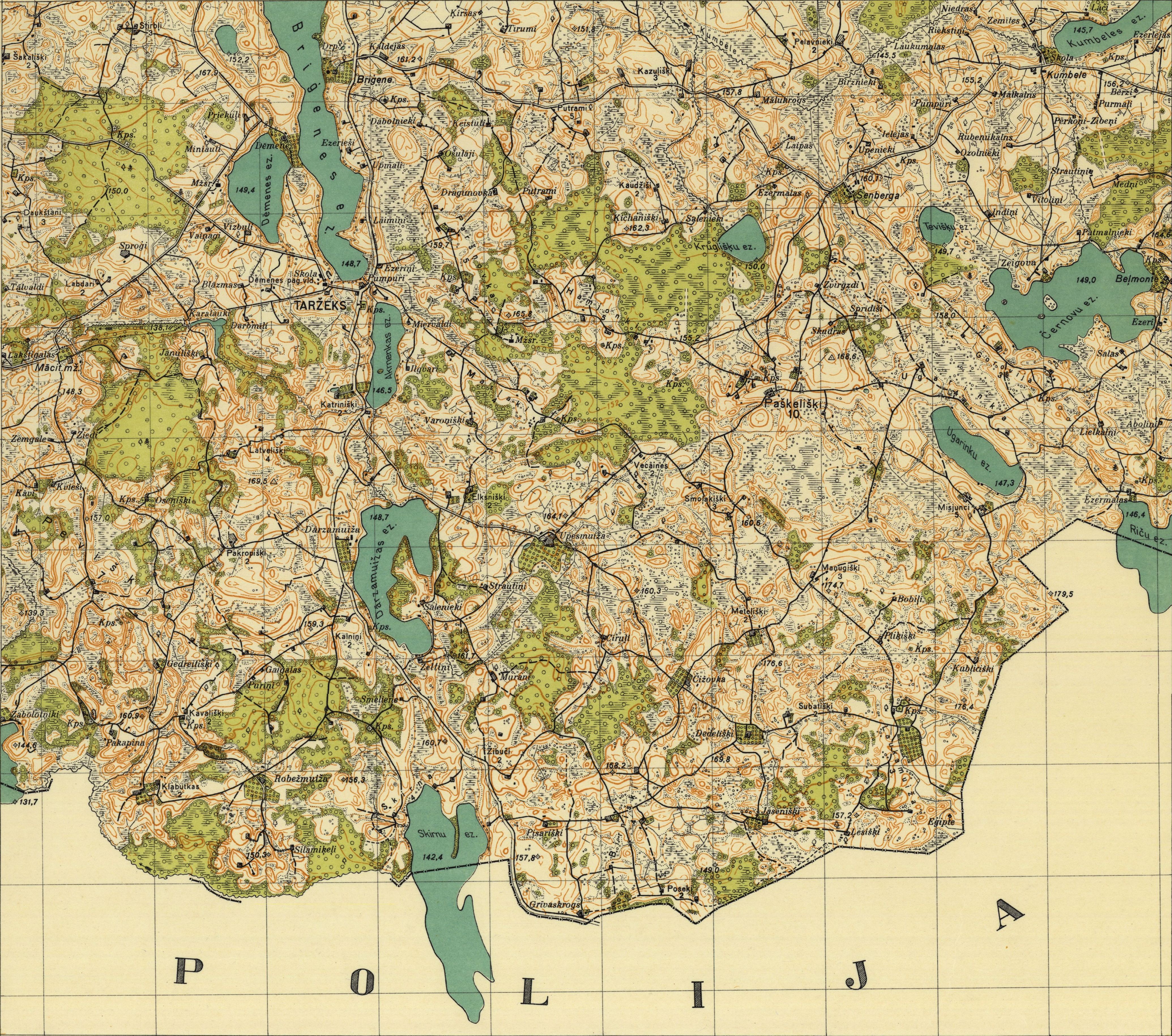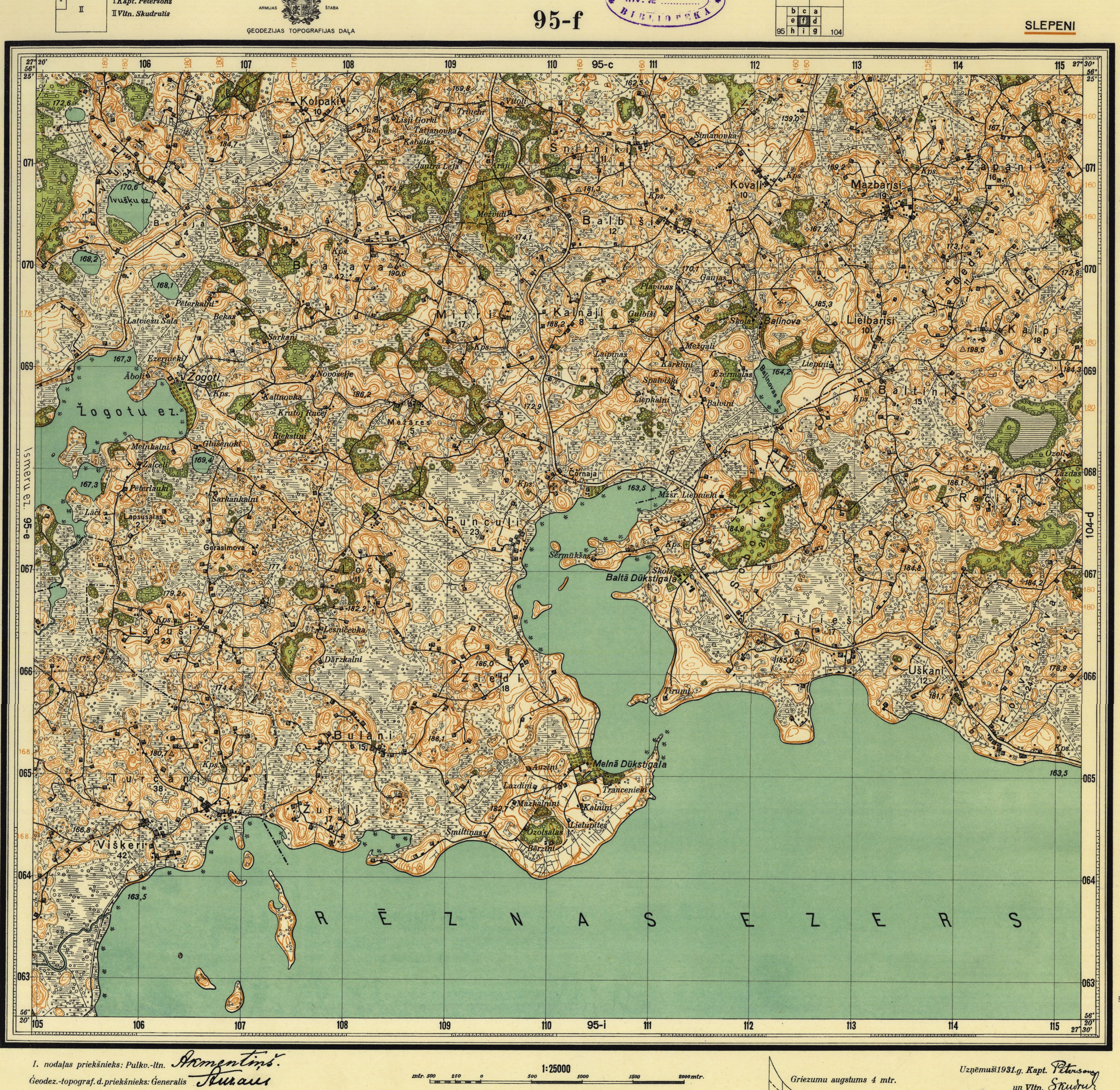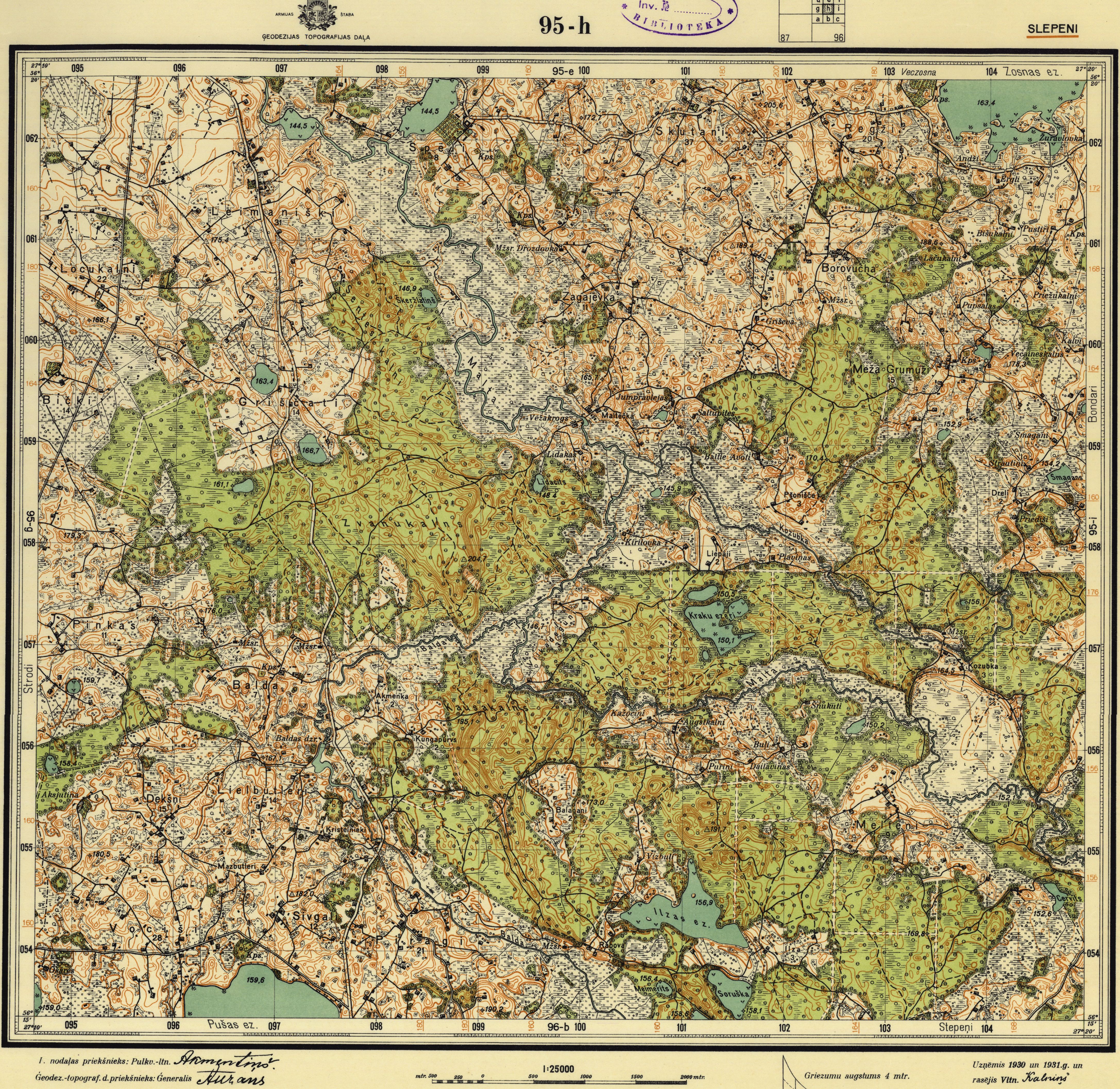 Latvijas Armijas štāba Ģeodēzijas-topogrāfijas daļas karte mērogā 1:25 000