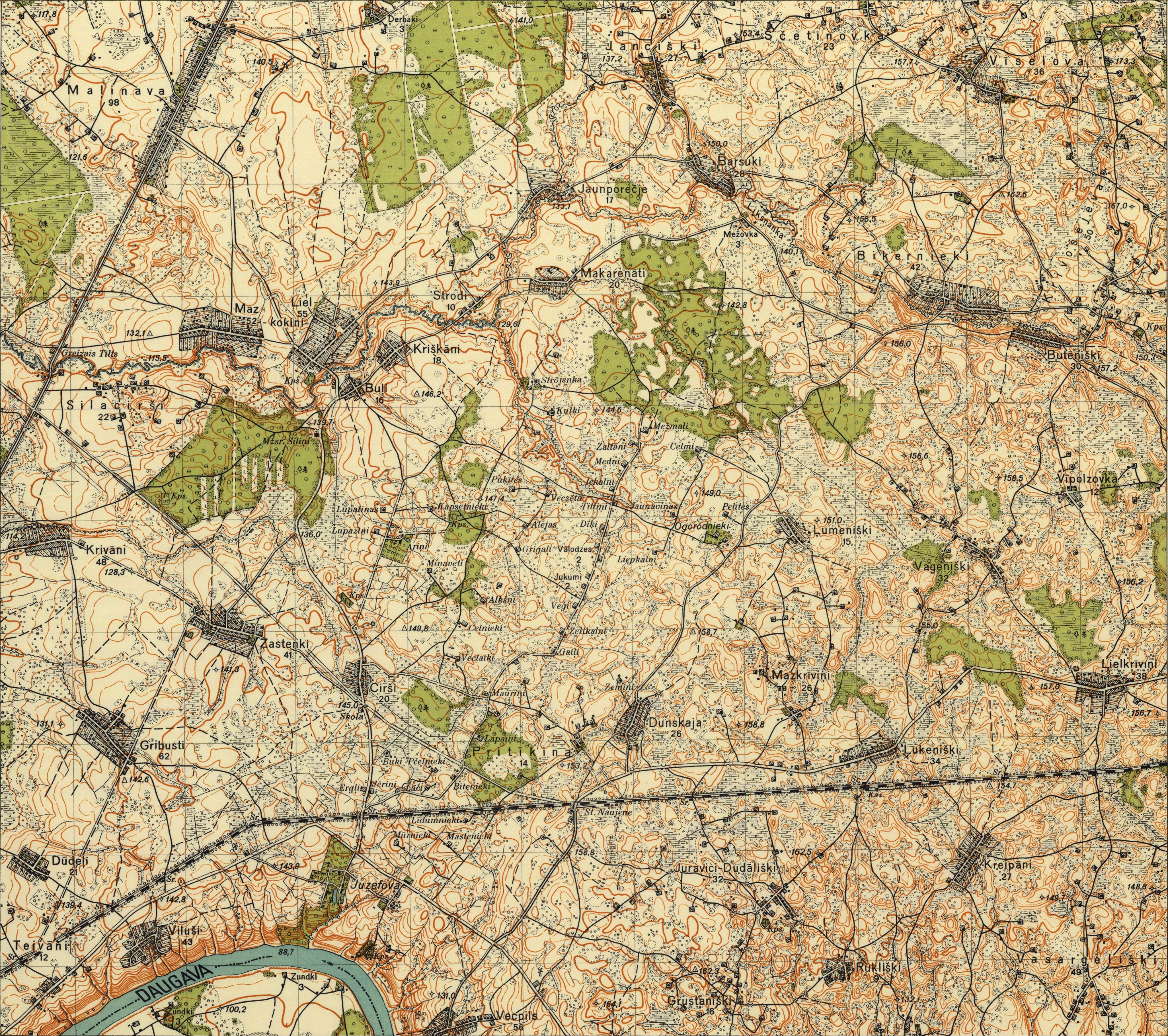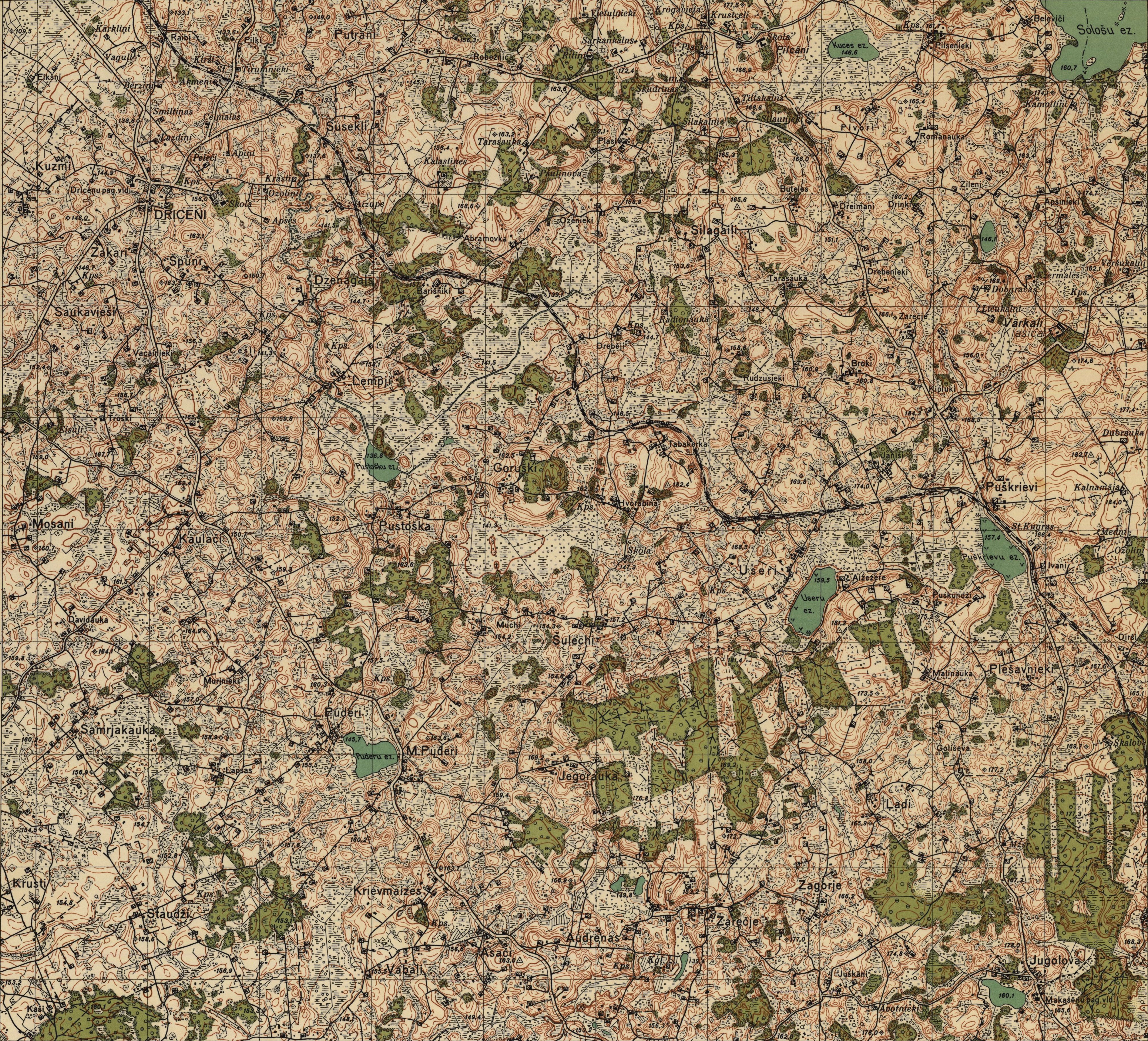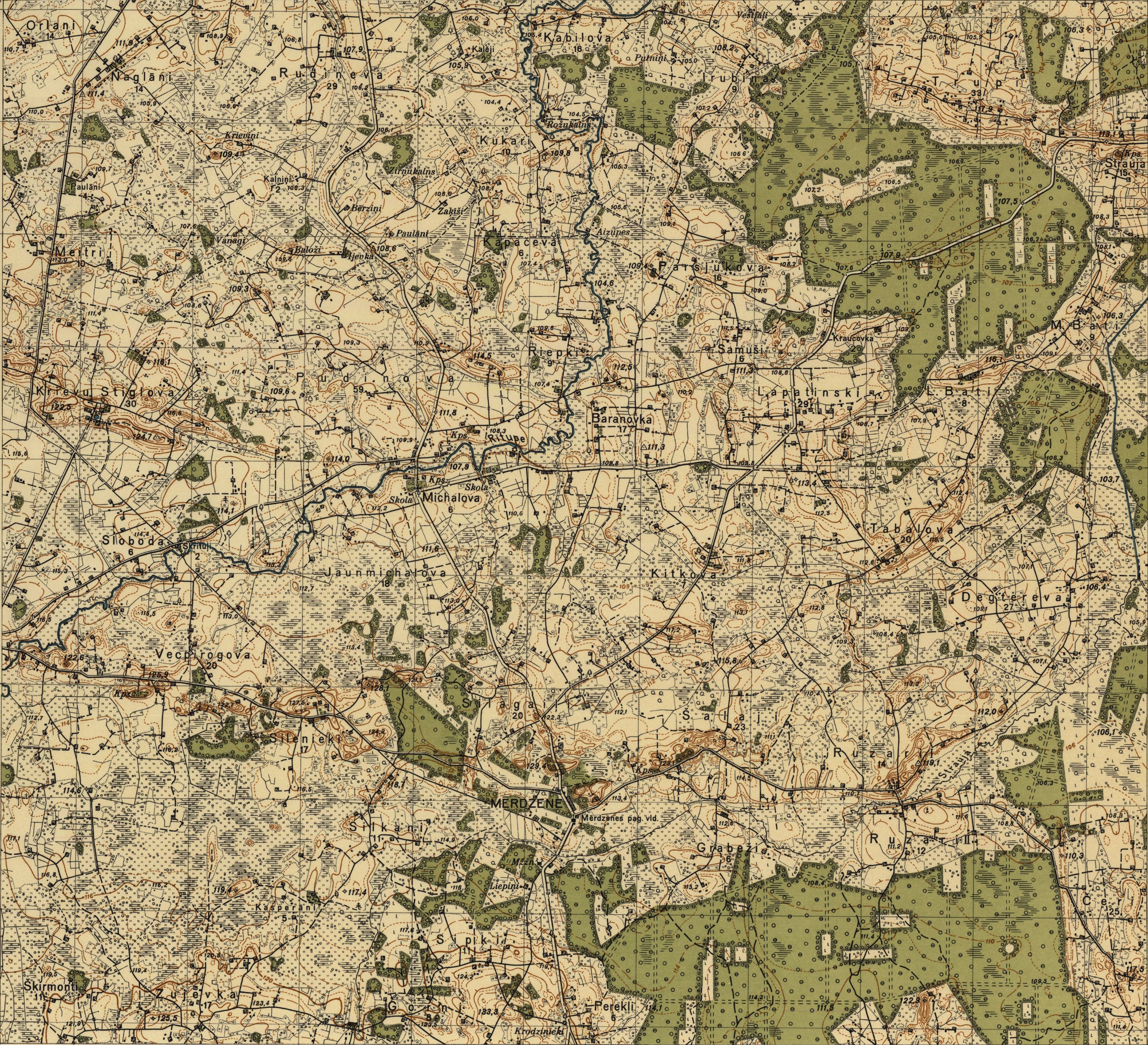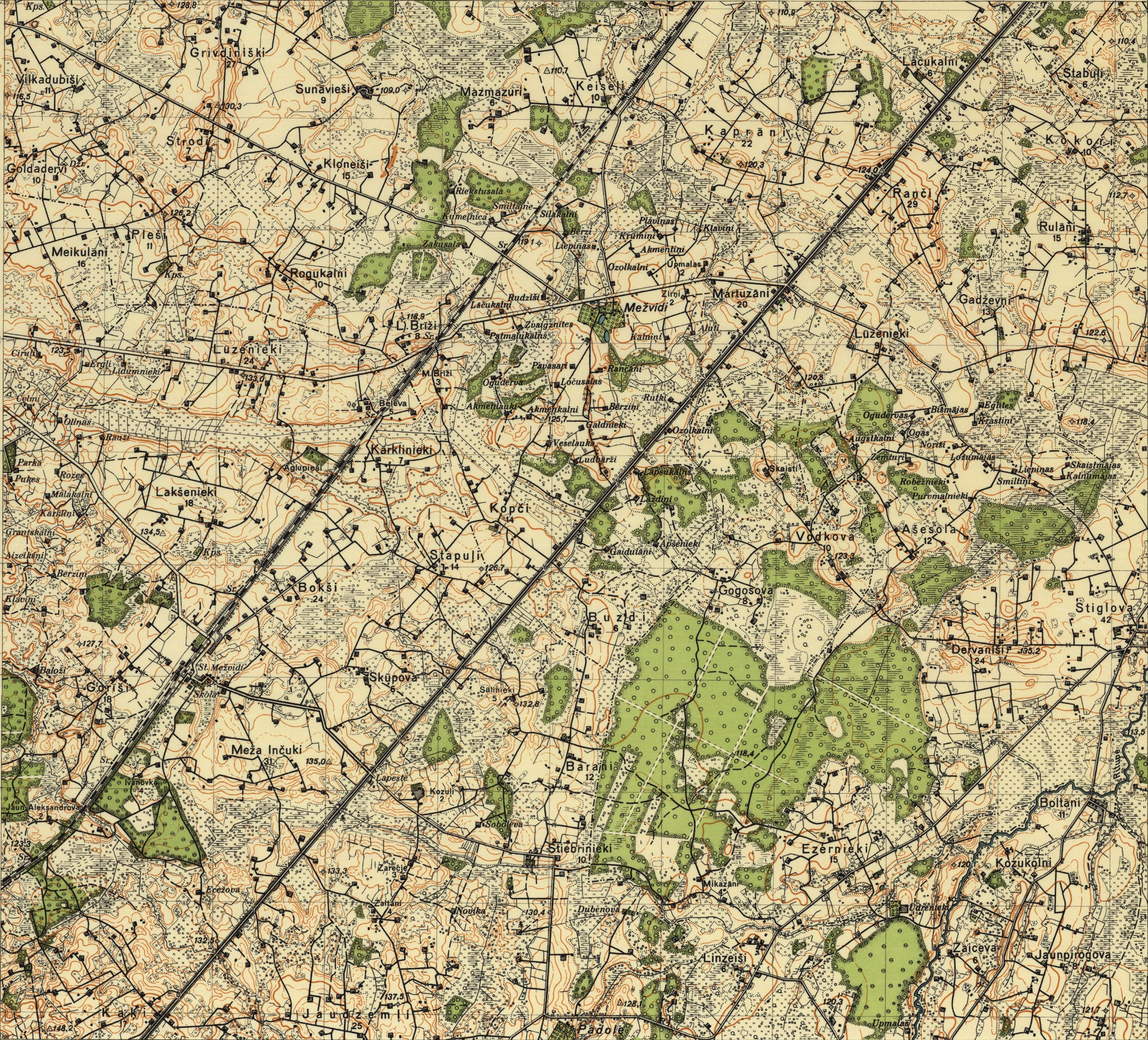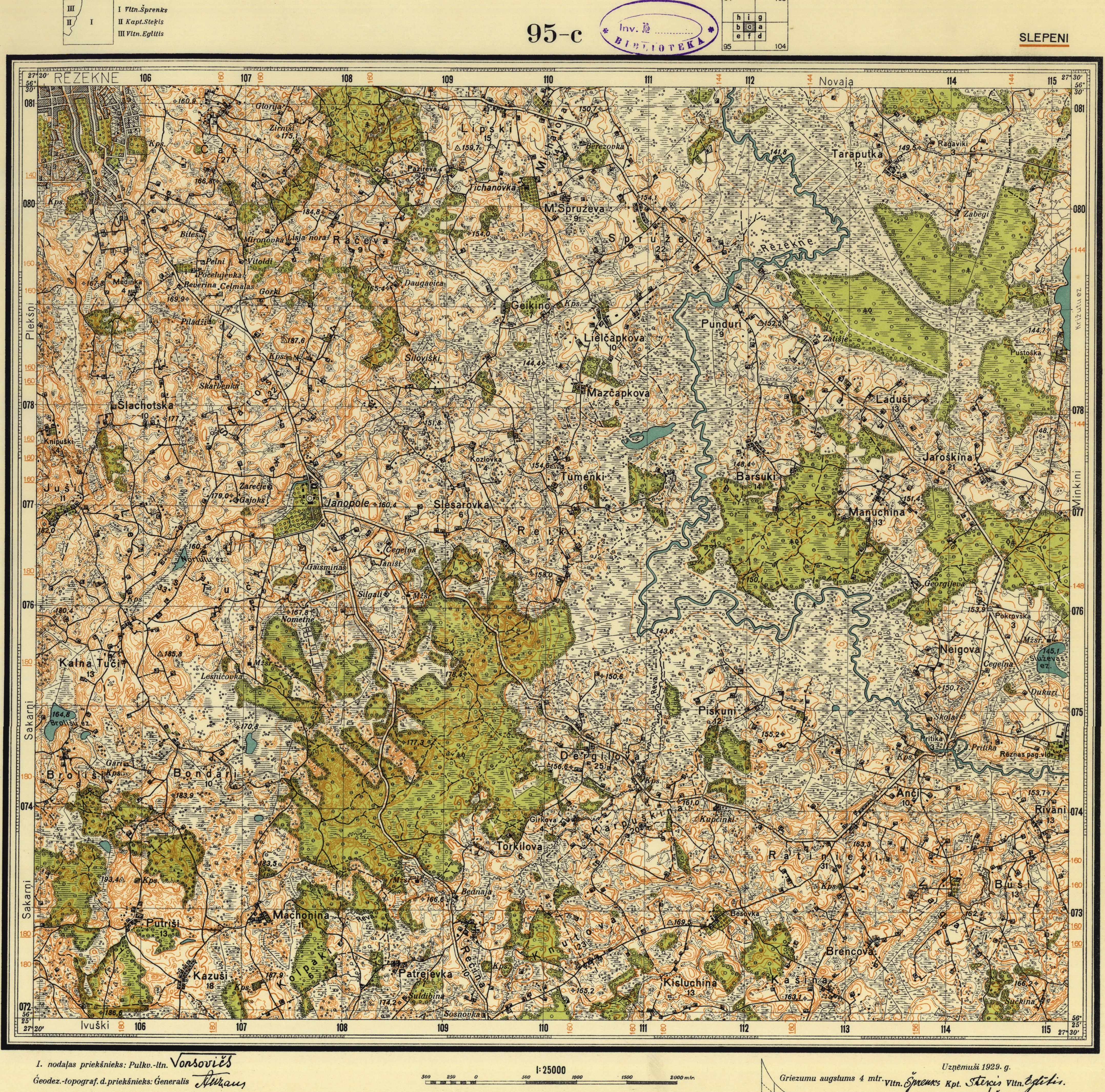 Latvijas Armijas štāba Ģeodēzijas-topogrāfijas daļas karte mērogā 1:25 000