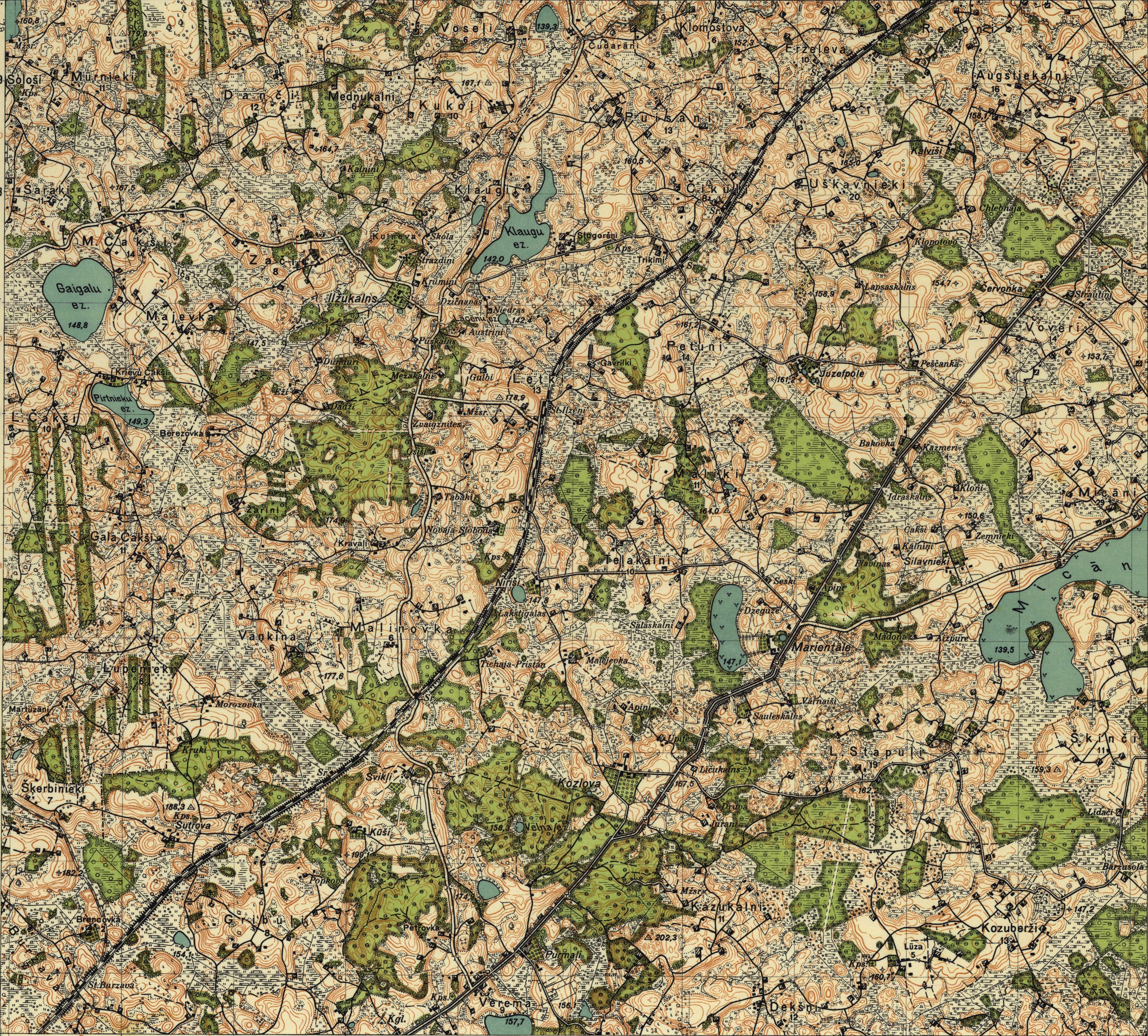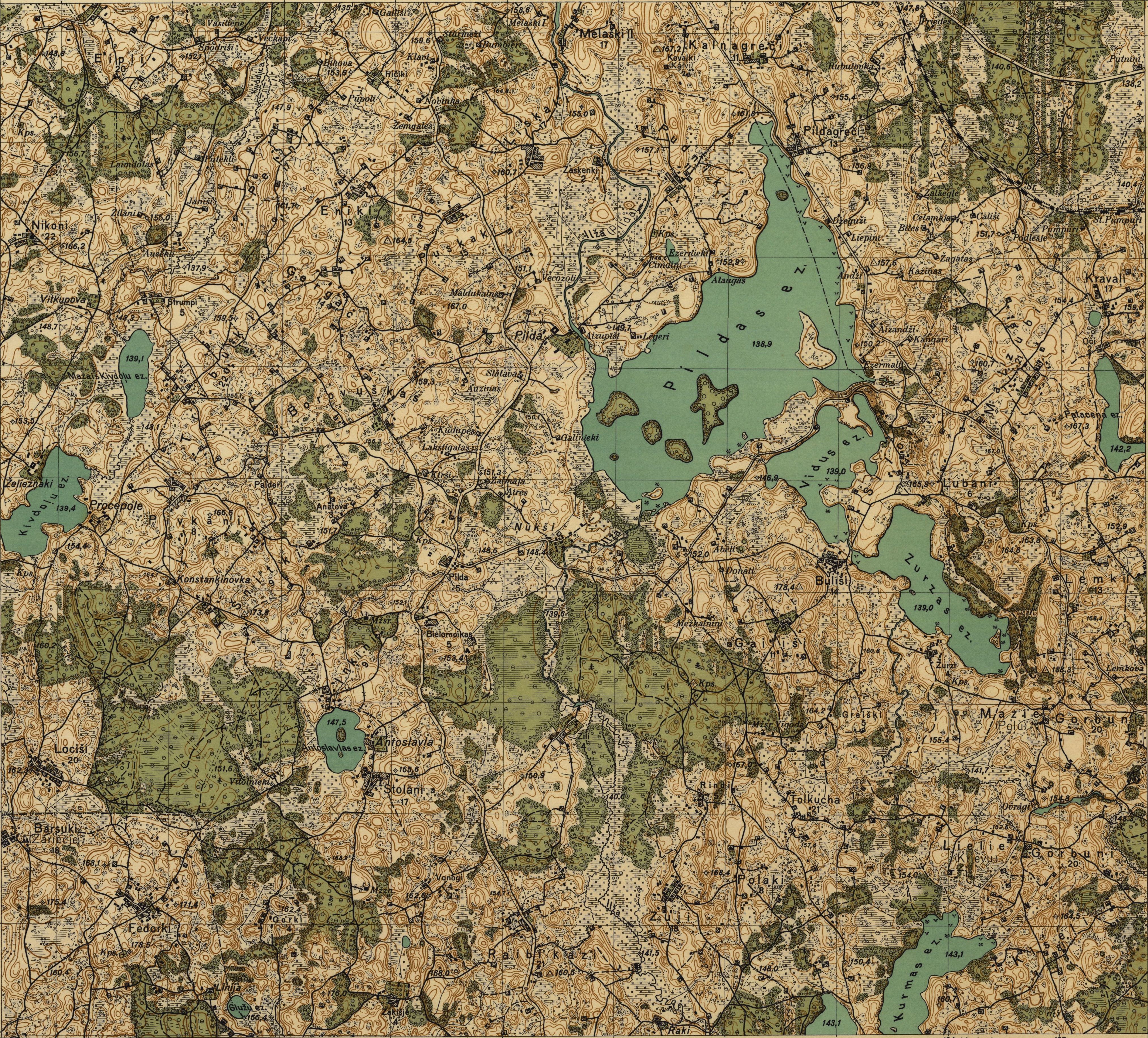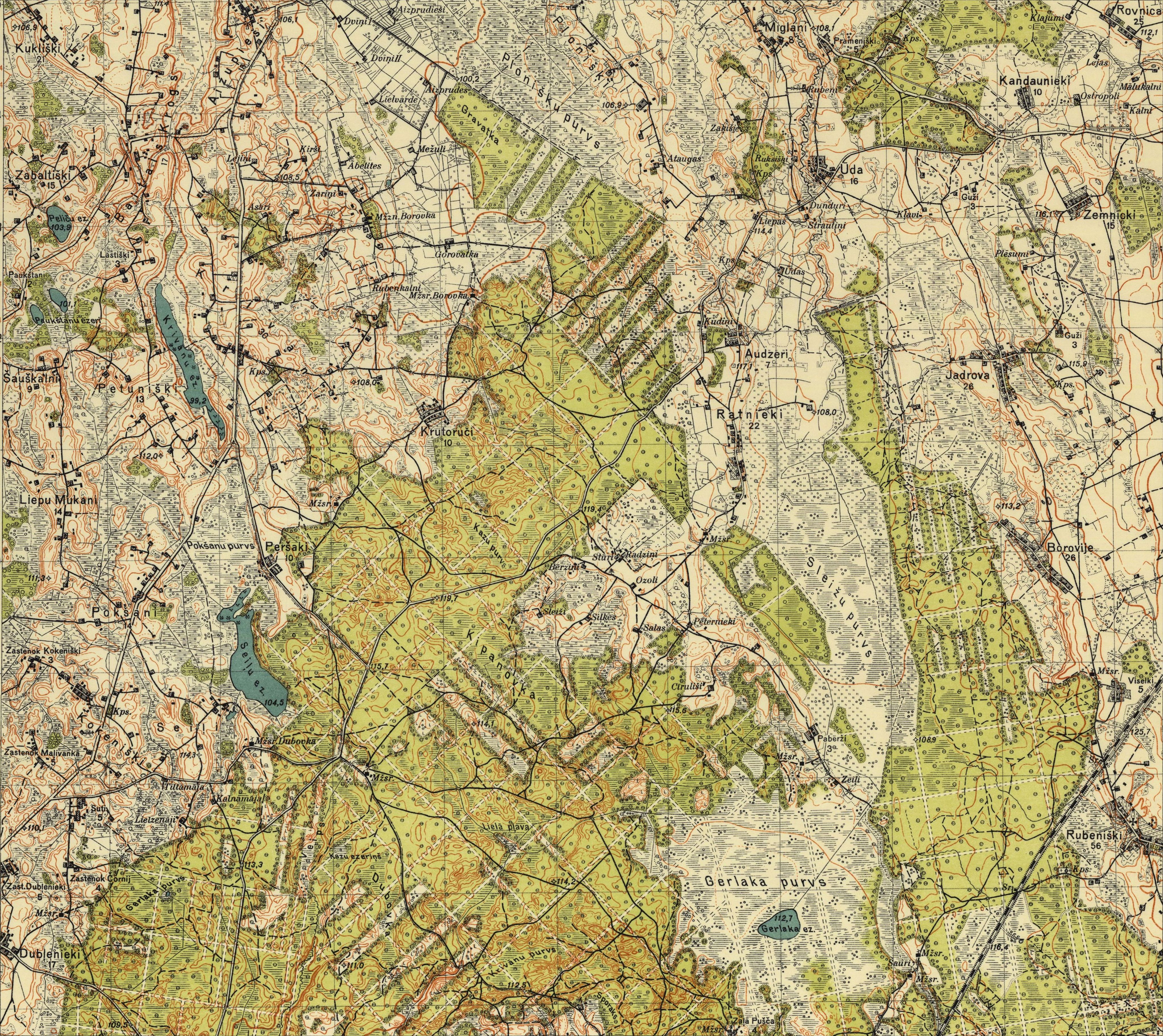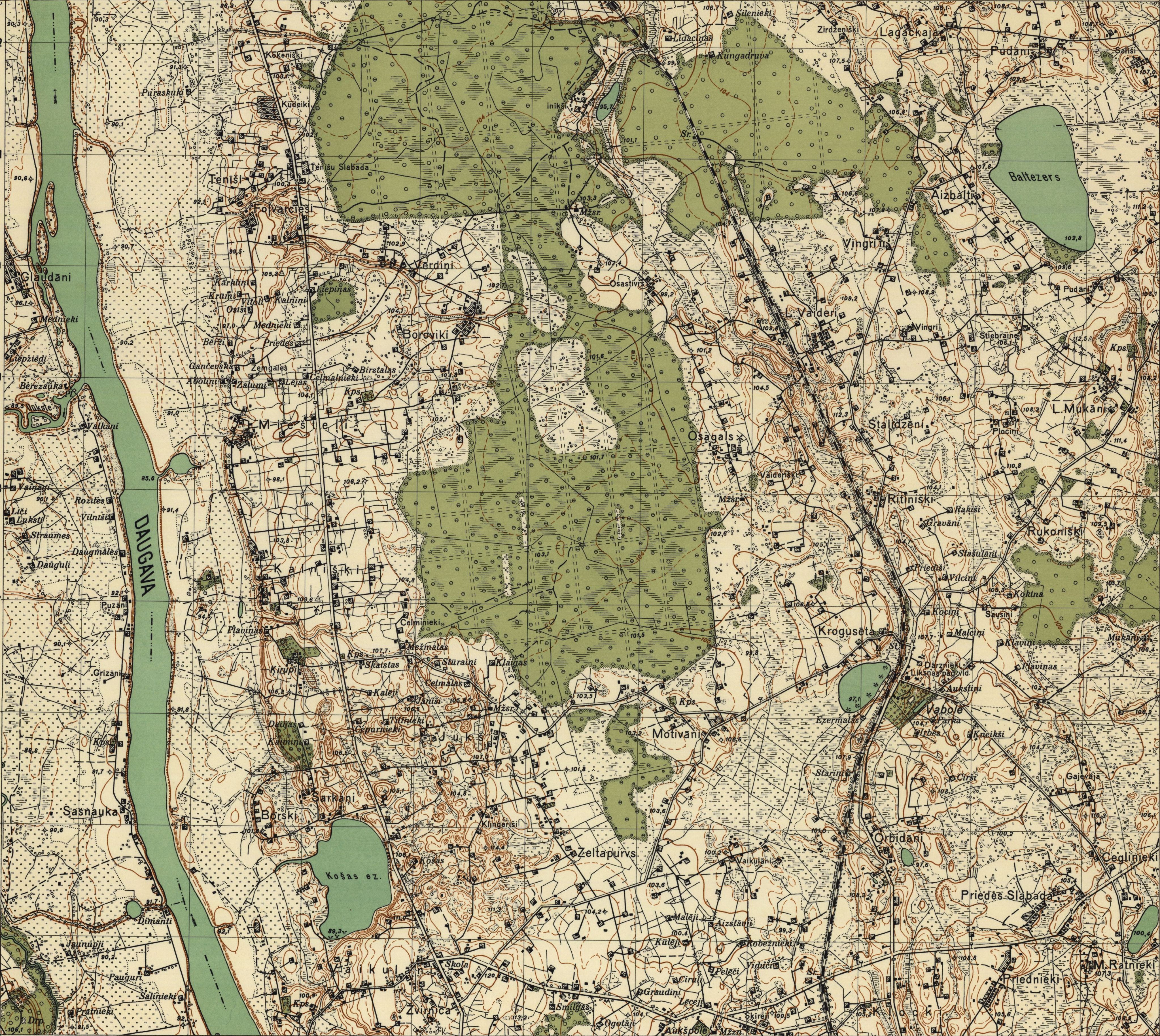 Latvijas Armijas štāba Ģeodēzijas-topogrāfijas daļas karte mērogā 1:25 000